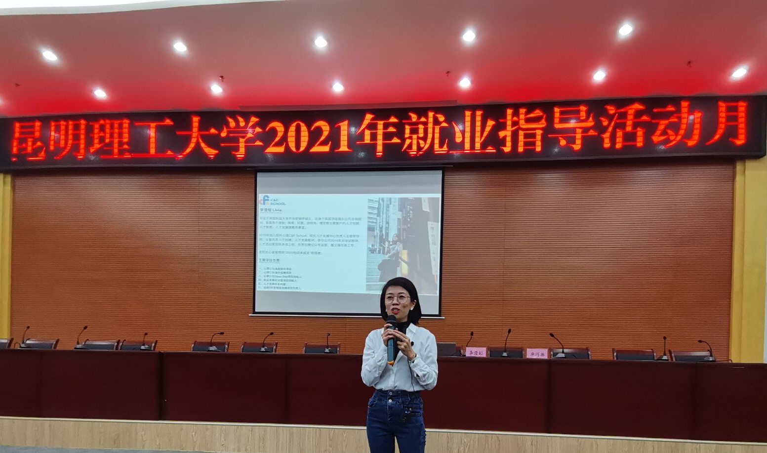 于学生事务中心15楼会议室开展“职场访谈”讲座。本次讲座由外文院社团管理部主办,由昆明市妇联兼职副主席唐巧琳、阳光心霖儿童公社人才发展中心负责人李娅滢主讲,外文院共50人参加。