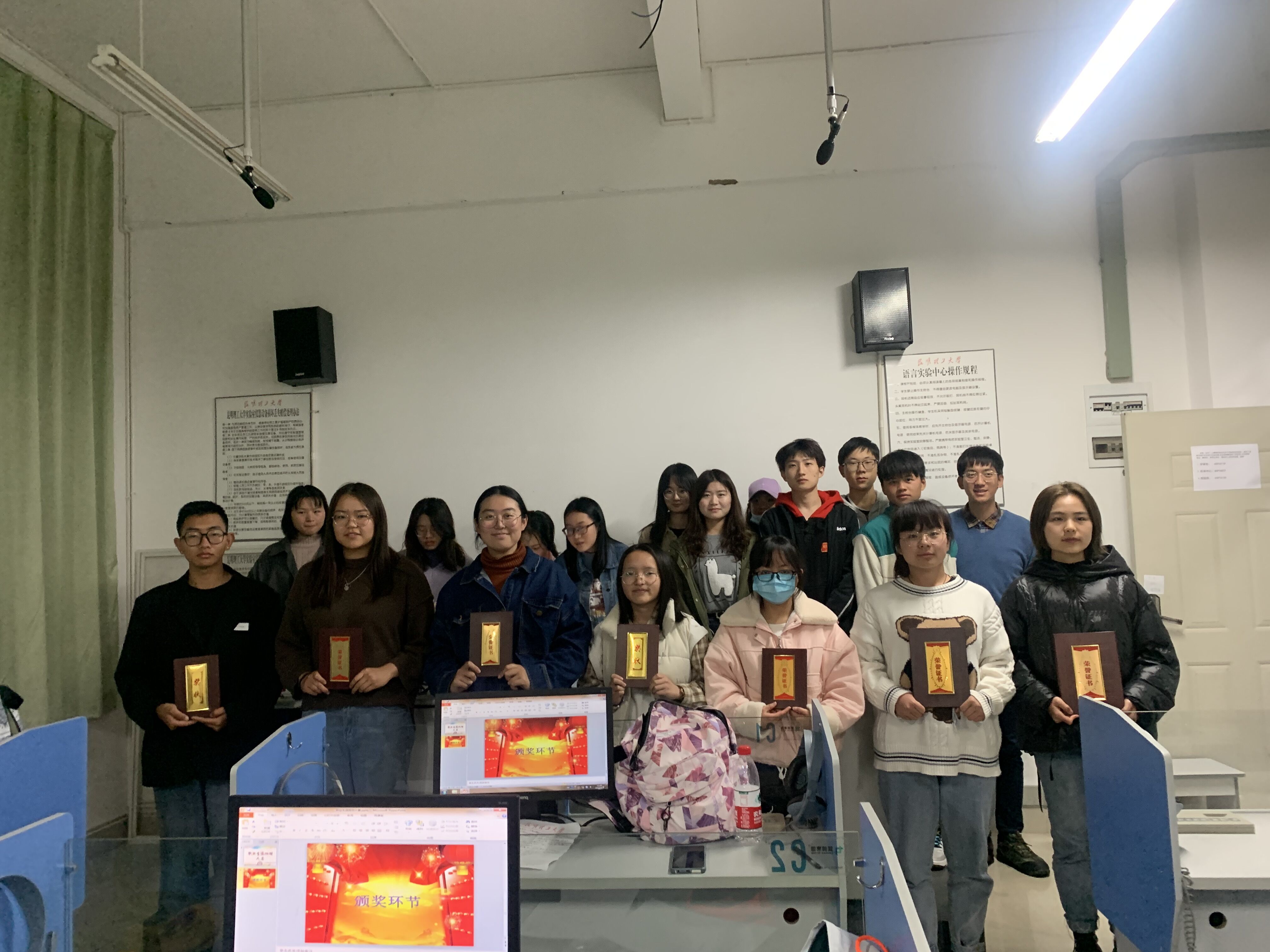 19点,比赛正式开始。首先,主持人介绍本次比赛规则和相关流程。接下来,由7位参赛者分别展示自己的参赛作品,并进行相应的讲解。最后,由评委2020级辅导员赵春芳、2018级辅导员潘霞和2017级辅导员王海燕进行奖项评选并颁发奖状,张莹获一等奖,宋恩希、贾忆莲获二等奖,杨博涵、李奕、何湘婷及聂宗杰获三等奖。