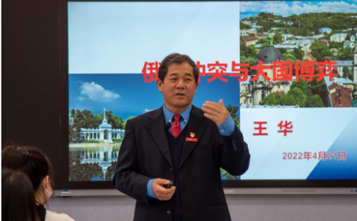 王华结合当前国际热点问题,详细为同学们讲解了俄乌冲突爆发的历史经纬与内在缘由,以及本次危机对世界和中国可能产生的深刻影响。