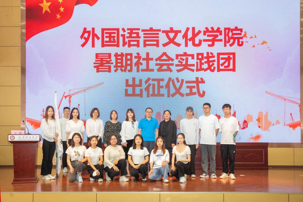 举行出征仪式,党委书记刘建平为暑期社会实践团授旗。