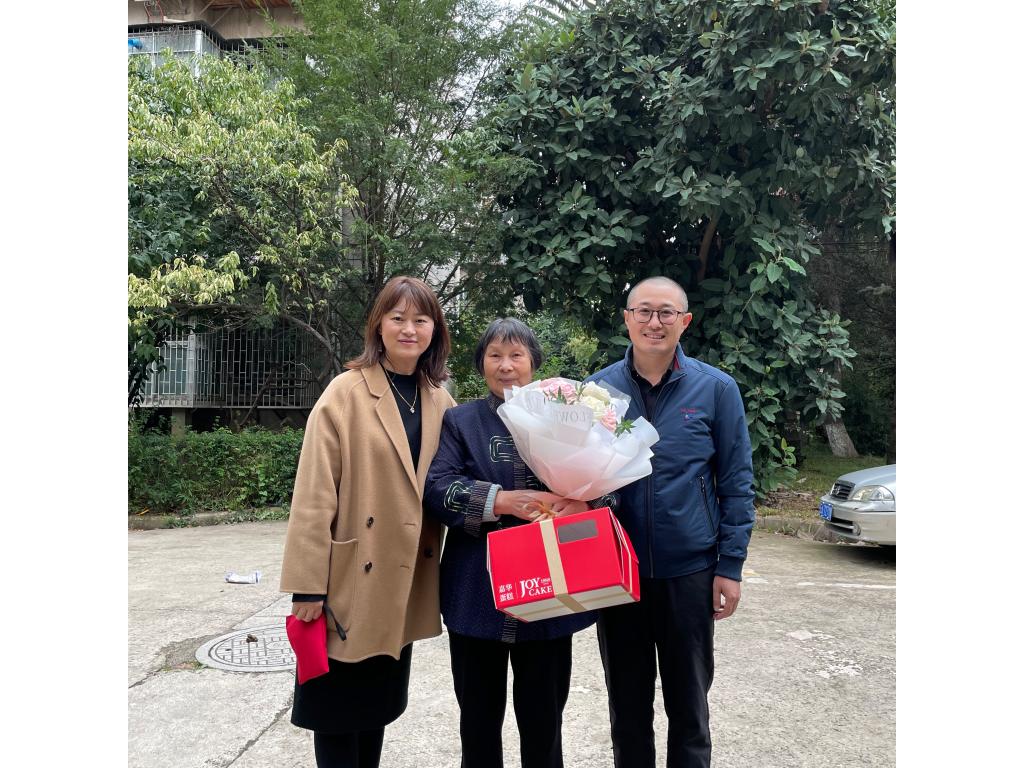 会后学院领导前去新迎苑给因病不能参加座谈会的八十岁前辈孟琦老师祝寿。刘建平书记和邱清遐副书记亲切询问孟老师的身体健康情况,嘱咐她注意保重身体,并送上特意为孟老师准备的生日蛋糕和鲜花,为她送去生日祝福。孟老师也表达了她深深感到社会大家庭的关爱和温暖,对学院充满了感谢之情。