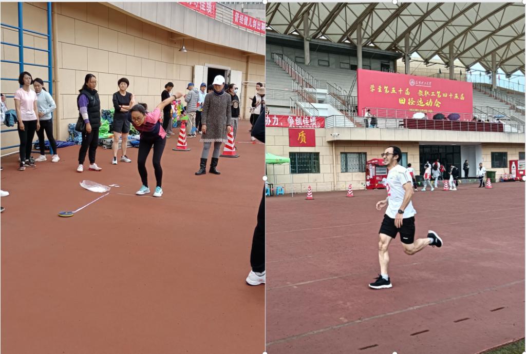 马开崇老师在男子乙组800米赛事中以2分28秒的优异成绩斩获小组第一,并在男子丙组1500米夺得第三名的好成绩;黄小年老师以优异成绩夺得女子甲组立定跳远桂冠,接着又勇夺女子甲组60米第二名;刘芋蔓老师在女子丙组跳远中获得了第五名的好成绩。在学院党委书记刘建平、院长王英的带领下,学院老师们团结一心,积极参与了拔河比赛和20*80米接力等集体项目比赛。