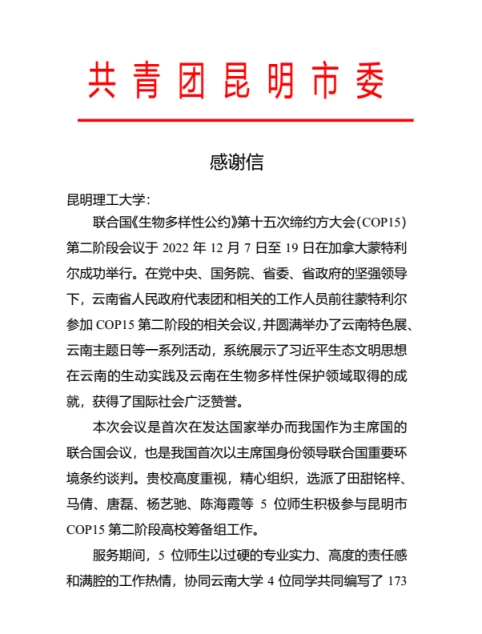 和云南大学选调师生组成高校筹备组,协助昆明市COP15筹备办和共青团昆明市委进行相关工作。接TYmanga