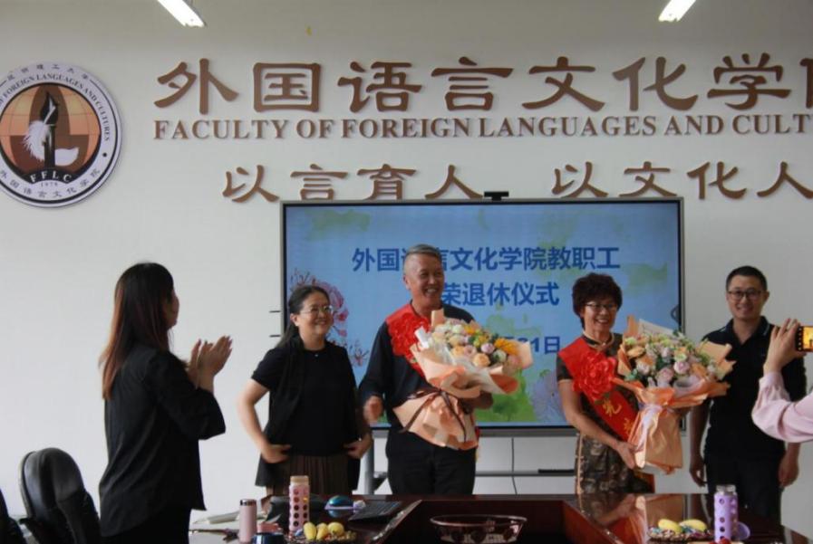 在博文楼312举办了温馨感人的教职工光荣退休仪式。学院党委书记刘建平、院长王英出席本次活动并讲话,工会主席李桂丽主持仪式,学院党委副书记邱清遐、副院长杨玲、各部门负责人及教师和学生代表出席活动。