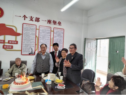 会后学院领导班子去了九十岁老教师王学铭和方斌宏老师家中,为他们送去生日蛋糕和祝福,亲切询问王老师和方老师的身体健康情况,嘱咐他们注意保重身体。两位老师也表达了他们对学院的感谢之情。