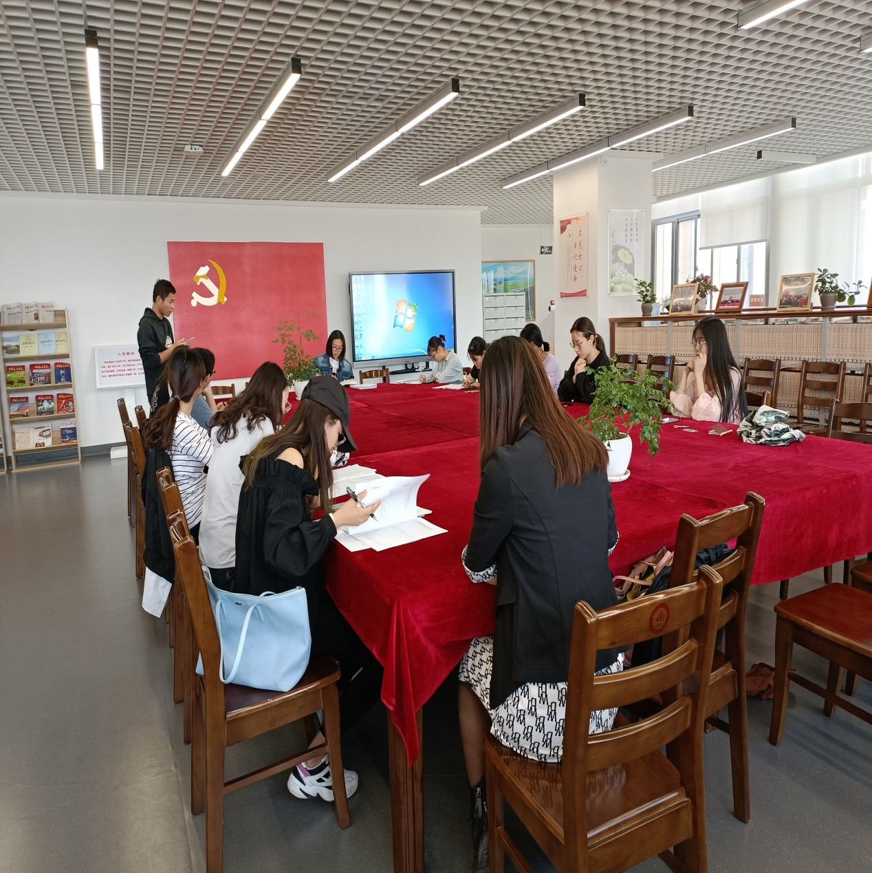 学院学生第二党支部在图书馆党建书屋开展“学四史、讲四史”主题党日活动