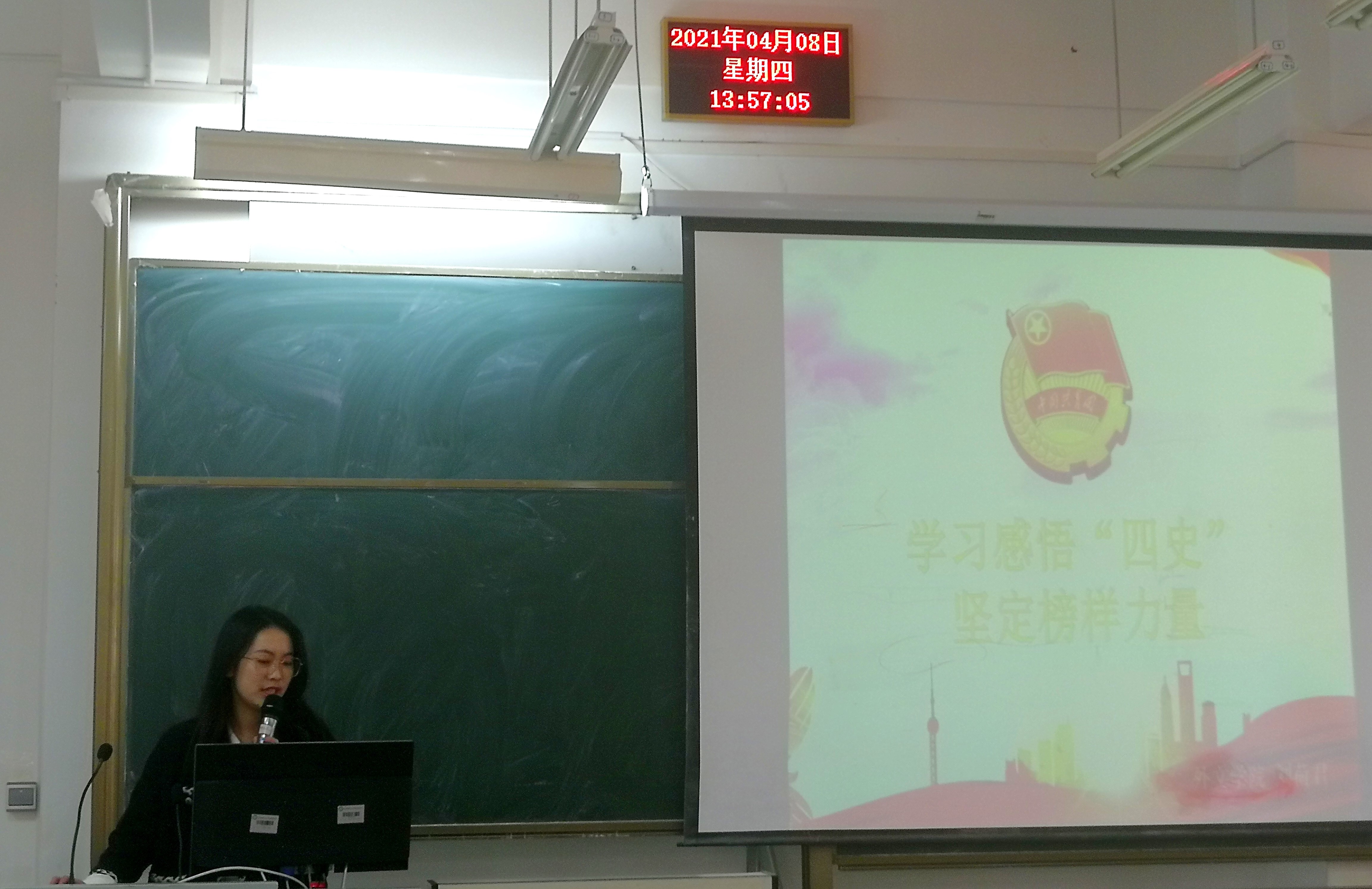 于西北A教学楼102教室开展“学习感悟‘四史’,坚定榜样力量”主题团课,本次团课由青年讲师团成员刘荷君主讲,外文院2018级全体同学参加。