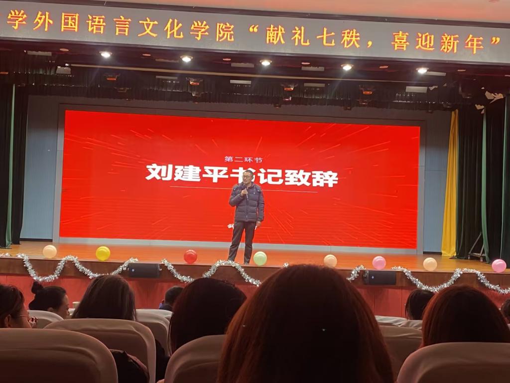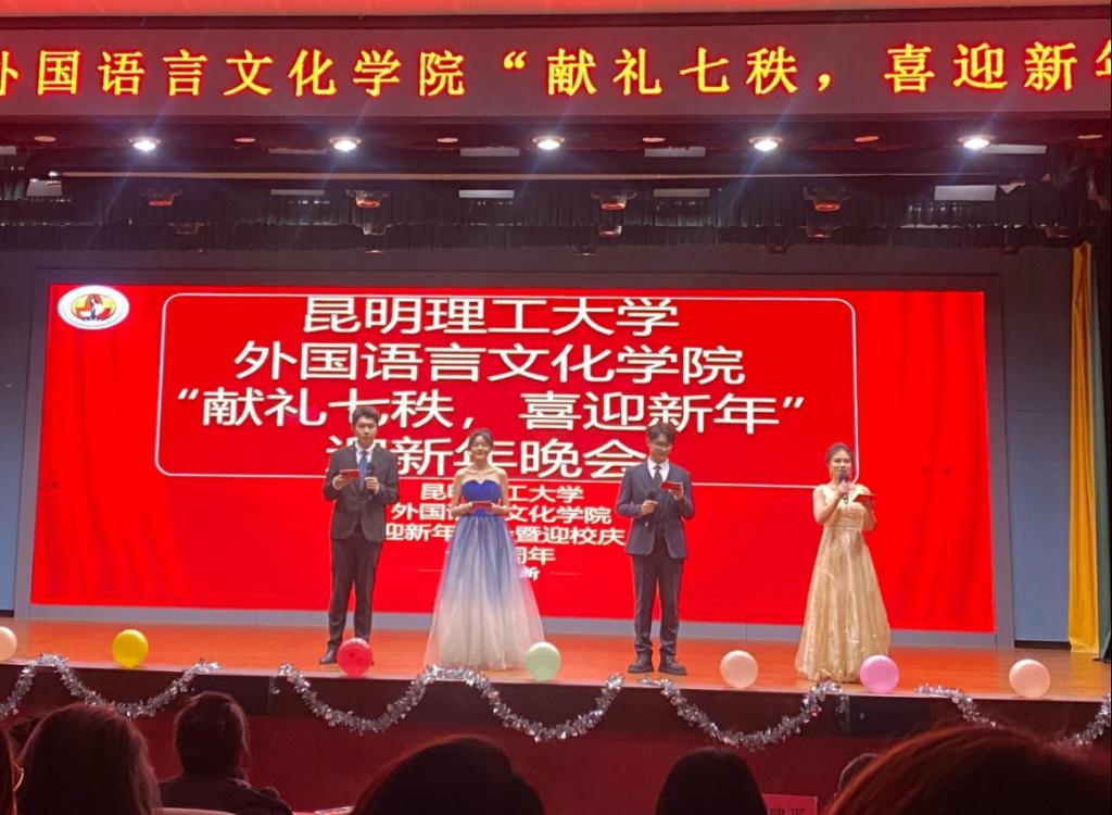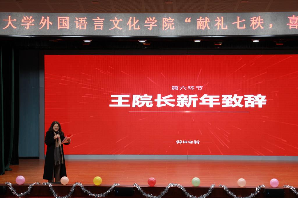 “献礼七秩,喜迎新年”迎新年晚会在公教楼小剧场举行。学院领导班子、教师代表和全体在校学生参加晚会。