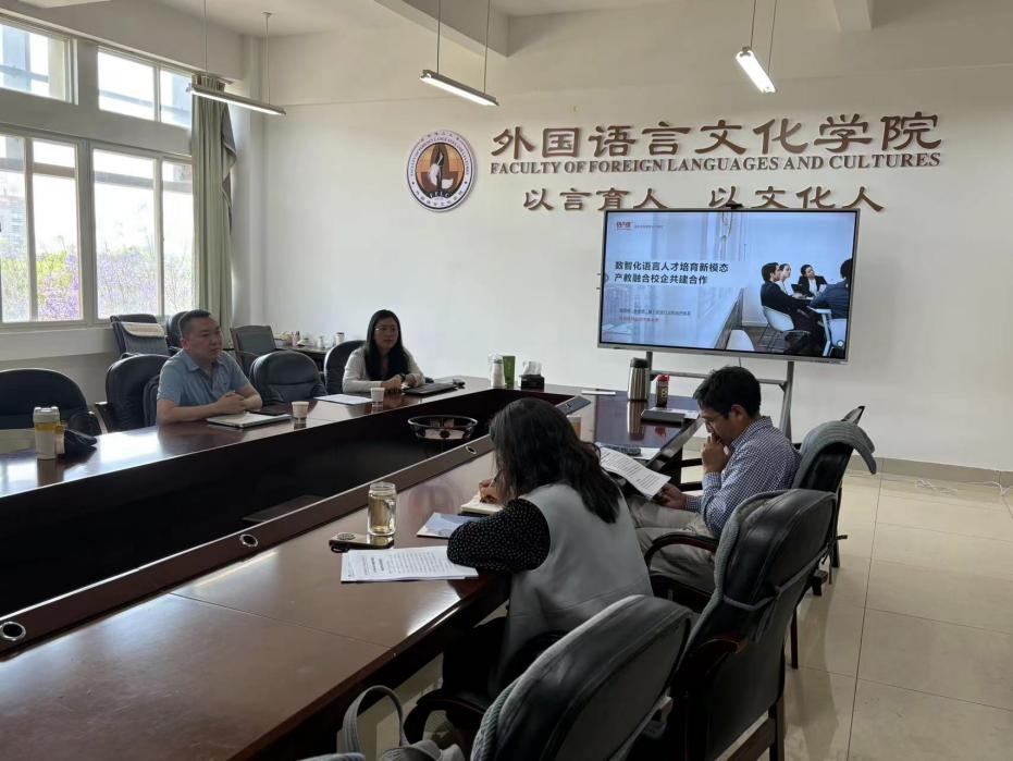 林琴从语言桥公司的组织架构、国内外的业务拓展情况、与高校合作状况等介绍了公司的情况,并欢迎学院研究生到公司总部实习,试用公司针对性的平台资源。王英回顾了学院学位点与语言桥长期合作的历史,祝贺语言桥公司获得了语言出口服务公司认证,并希望双方能够建设一个能支撑持续合作的合作平台。双方就接下来可能推进的合作内容达成了一致。