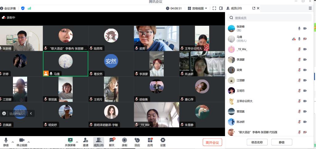 组织中国国际大学生创新大赛(2024)院级初赛。本次我院本科生和研究生共18个项目参加比赛,其中包含11个高教主赛道项目和7个青年红色筑梦之旅赛道项目。学院召开线上路演评审会,邀请云南大学外国语学院张新峰副教授、云南师范大学化工学院王琴副教授、云南民族大学外国语学院团委书记梁爽老师、昆明译诺翻译服务有限公司字敏总经理以及我院覃丽赢副教授担任评委,评审会由云南大学张新峰副教授主持,我院副院长马倩、项目负责人及相关指导教师参会。