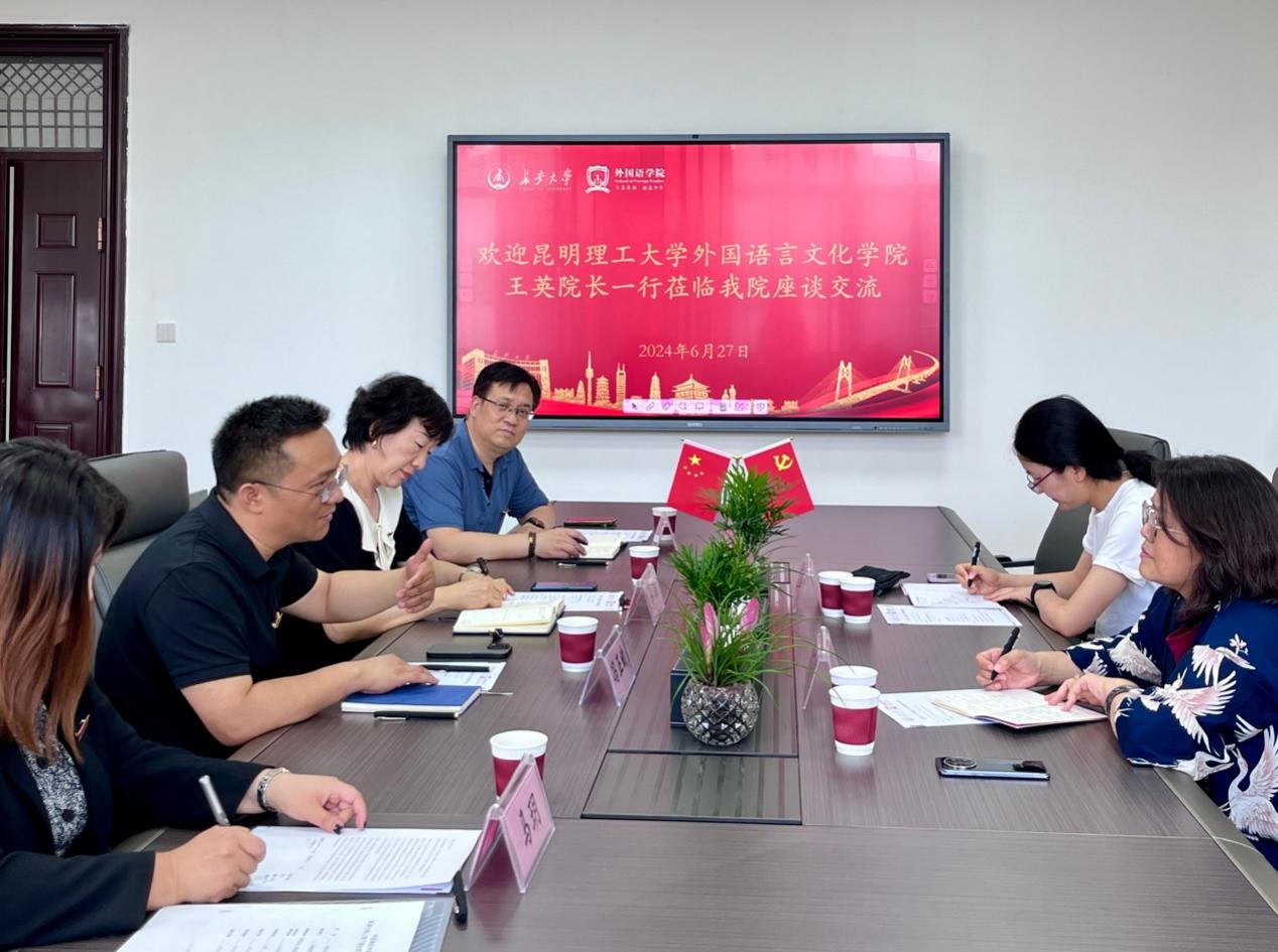 院长王英及教师代表茶秋思博士一行前往长安大学外国语学院调研交流。长安大学外国语学院院长冯正斌、副院长马瑛、英语系主任赵斌以及教师代表马玥参与座谈交流。