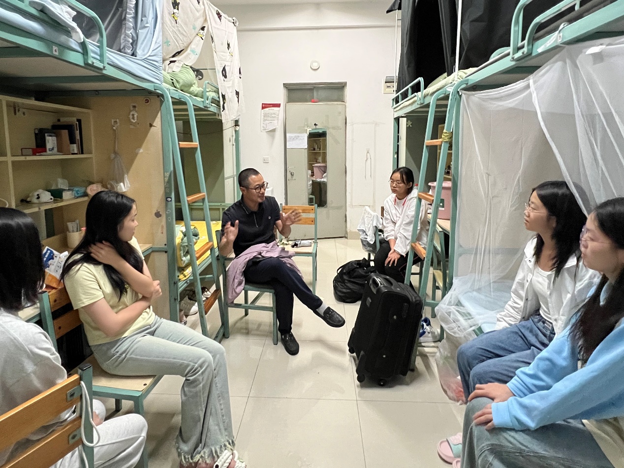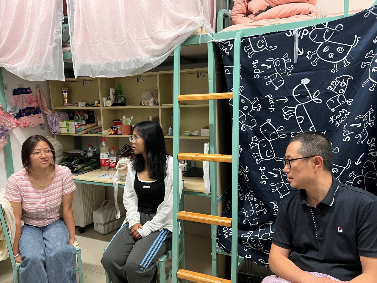 2024年8月18日晚,学院党委书记刘建平走访新生宿舍,与学生们面对面交流,倾听学生需求。