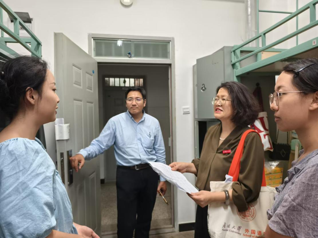 院长王英、副院长李泽生及辅导员马超然,走访了2024级研究生新生宿舍,旨在了解新生的入学适应情况,传递学院的关怀与期望,并为新生们提供必要的帮助和指导。