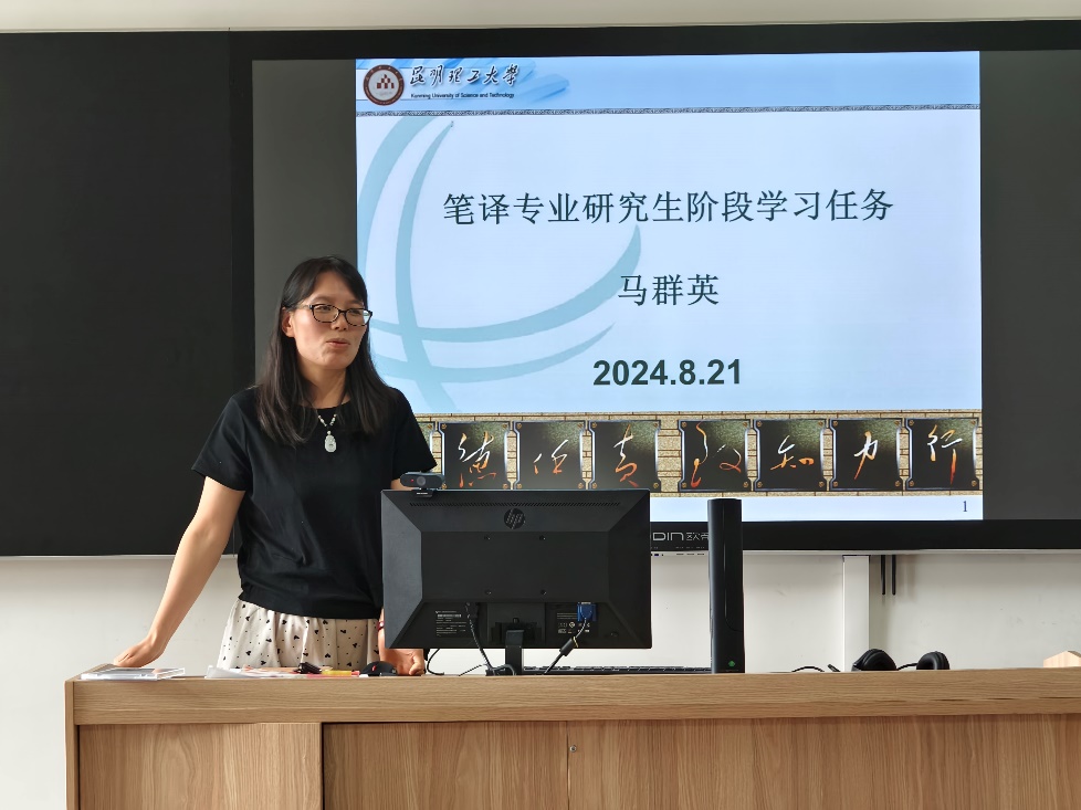 马群英在学业指导中,从培养方案、校内校外实践、学位工作等详细介绍了MTI研究生的学习任务。她鼓励研究生们注意身心健康、尽早确定目标、提高语言能力、拥抱新的翻译技术。
