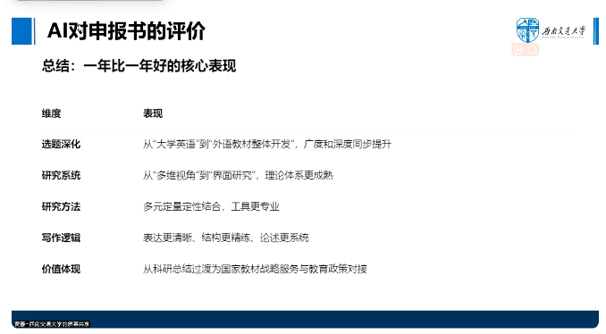 组织开展“AI赋能高校外语教育教学”集体教研活动,邀请深圳大学语言与智能实验室主任区可挺、西南交通大学外国语学院联合博士生导师贾蕃作专题学术报告,针对AI赋能高校外语教育教学、国家社科基金后期资助项目申报书撰写等与学院教师进行研讨交流。