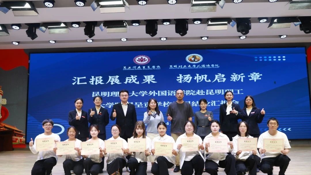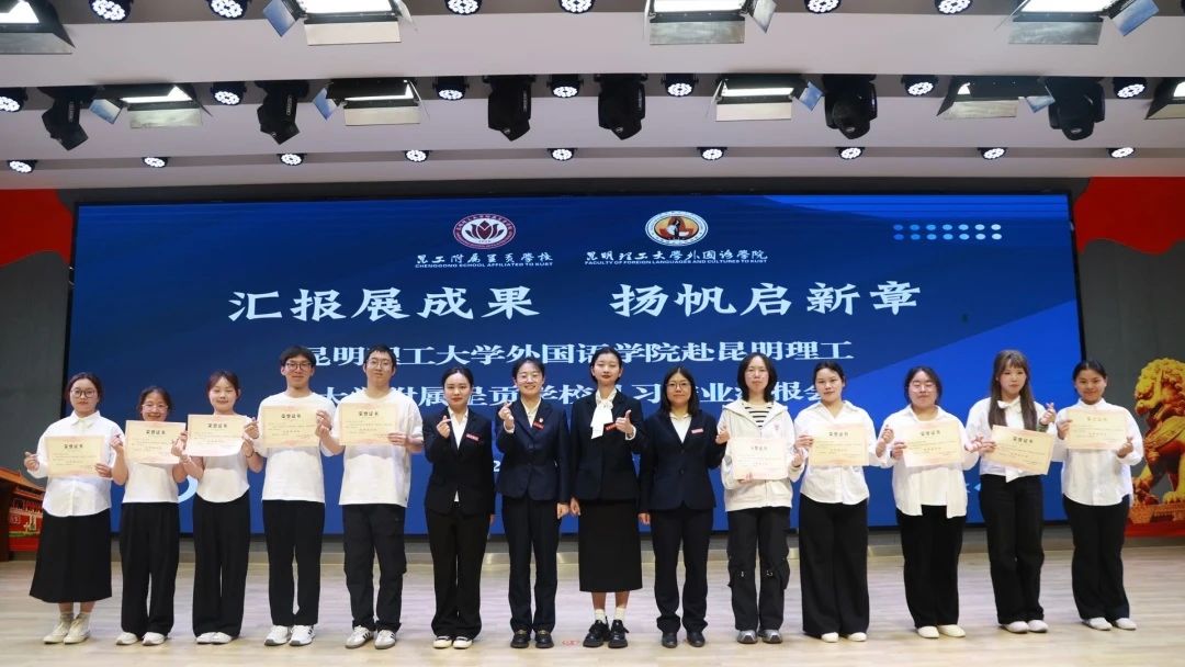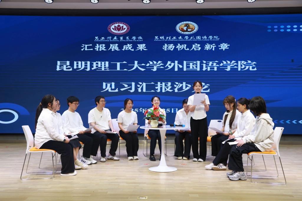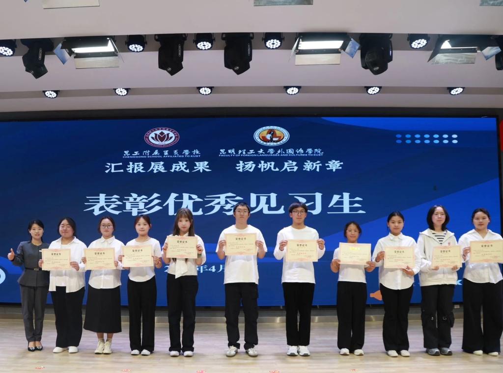 实习带队老师杜萌萌老师和见习生们共合唱昆工校歌《我们从这里出发》,展现了他们的朝气与活力。
