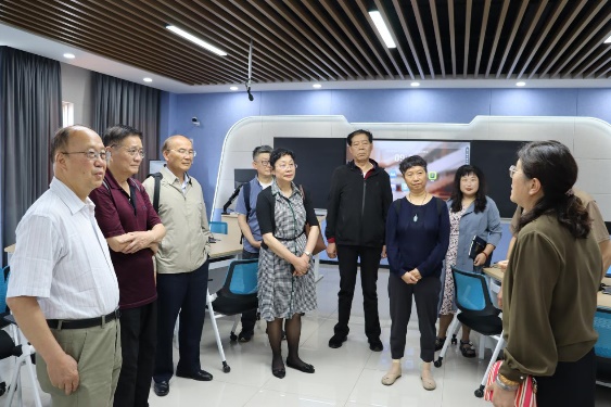 校督导专家还参观了学院新建的学科智慧教室,体验了虚拟仿真国际学术会议实训室的VR英语实景训练场景。