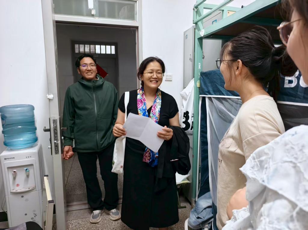走访过程中,王英细致了解每位研究生考研的经历,到校后的生活情况,鼓励同寝室同学相互关心、共同成长,同时勉励大家努力学习,力争在校期间产出高水平学术和实践成果。