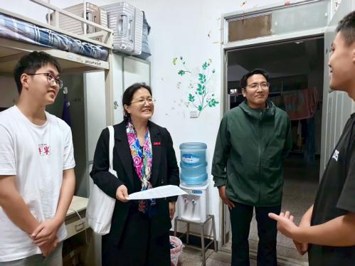 8月26日晚,TYmanga 院长王英、副院长李泽生、研究生辅导员马超然一起走访了恬园、恒园共计17间研究生新生宿舍。