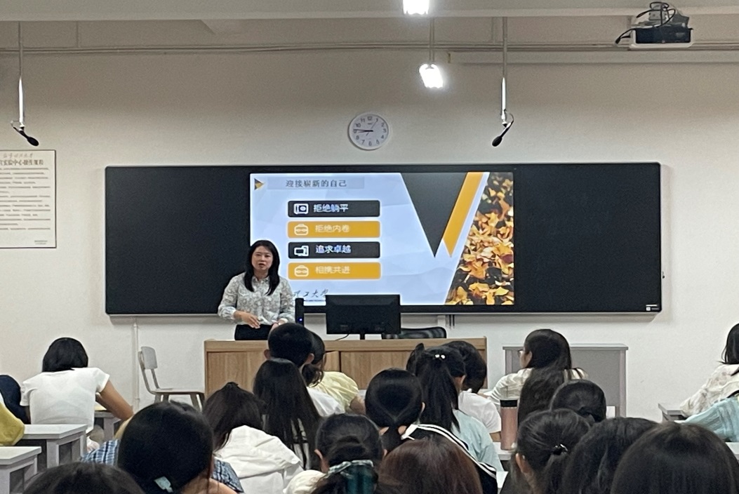 英语系主任任佳佳、英语系副主任胡权以“认清自我、认清专业、认清目标”为题,讲解了学院专业课程安排,分享了学习经验,勉励新生尽快适应大学生活、明确学习规划,不断提高专业知识能力。