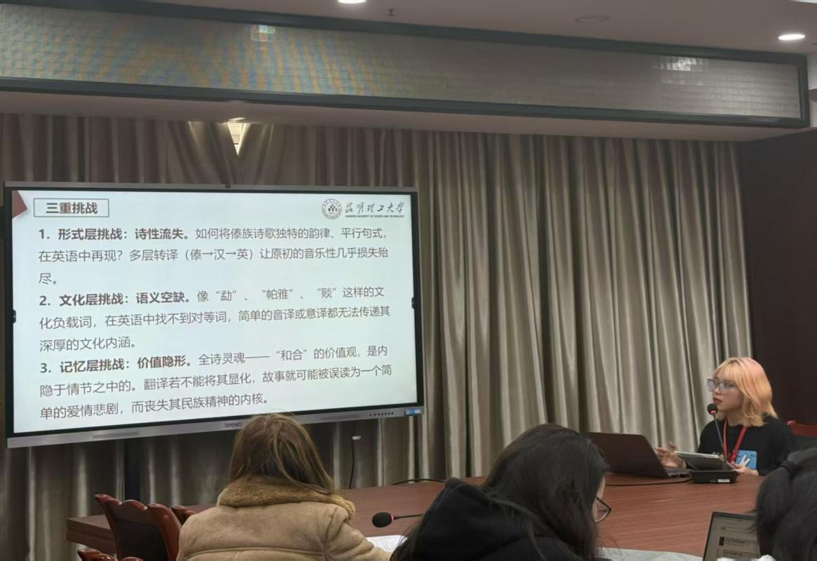 2025年10月31日至11月2日,中国英汉语⽐较研究会典籍英译专业委员会主办的第七届民族典籍翻译学术研讨会在西南民族大学召开。学院外国语言文学专业研究生依应叫仑(2024级)、李亚彬(2025级)应邀参会,并在分论坛分别宣读了题为《民族志诗学视角下傣族叙事诗<葫芦信>英译中的文化记忆重构》《数字人文赋能<阿诗玛>英译的共同体价值传播研究》的学术论文。