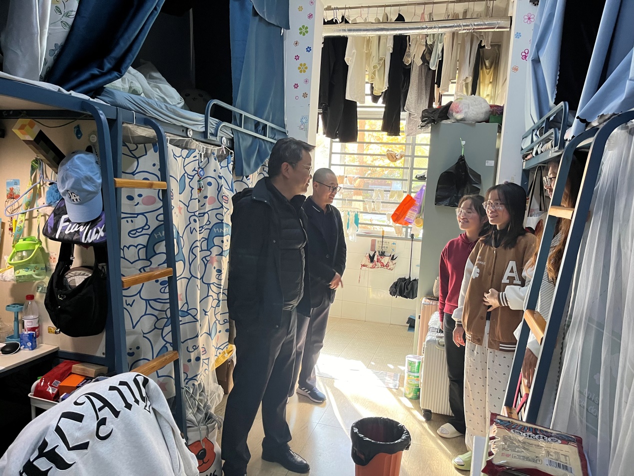 走访过程中,张绍宗与同学们亲切交流,细致询问大家的校园生活状况和存在的困难,传递了学校对每一位同学的温暖关怀。他耐心了解同学们的未来发展规划,并勉励大家树立远大目标,勤奋努力、勇于创新,为未来发展打下坚实的基础。