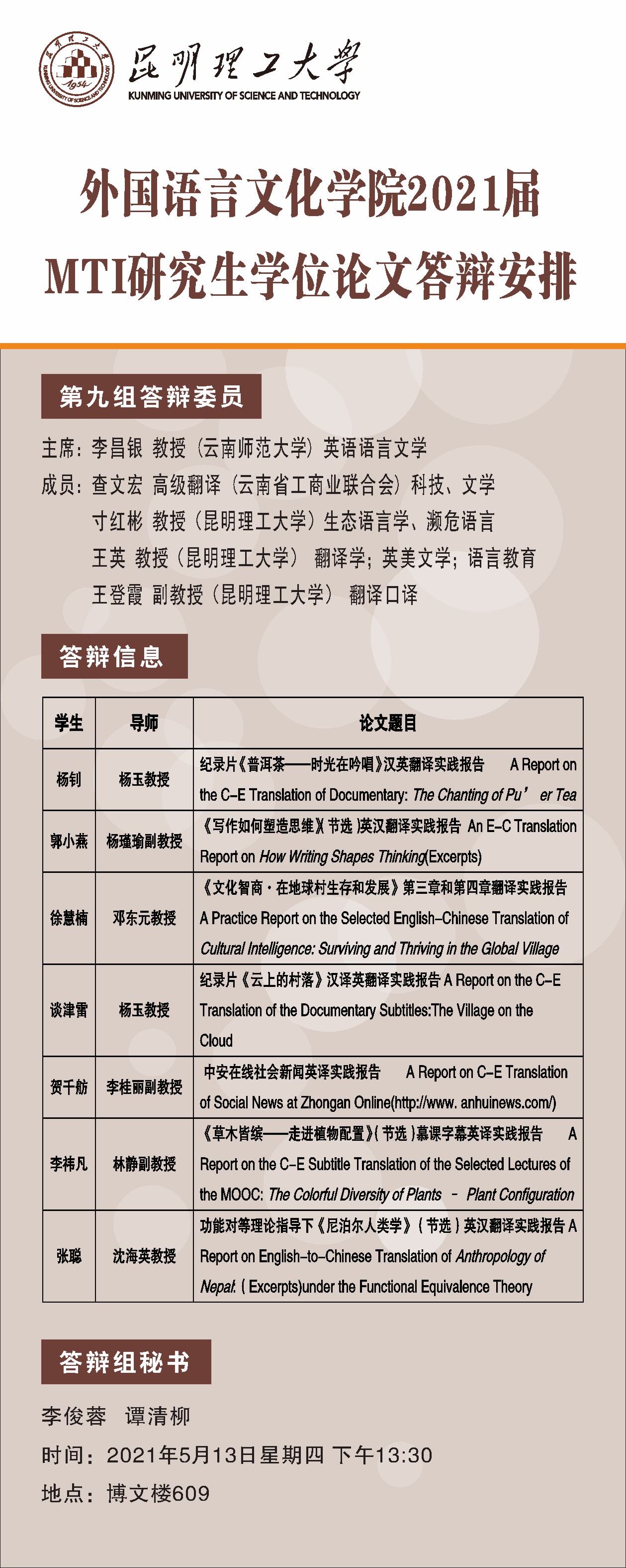 TYmanga 2021届MTI研究生学位论文答辩公示(第九组)
