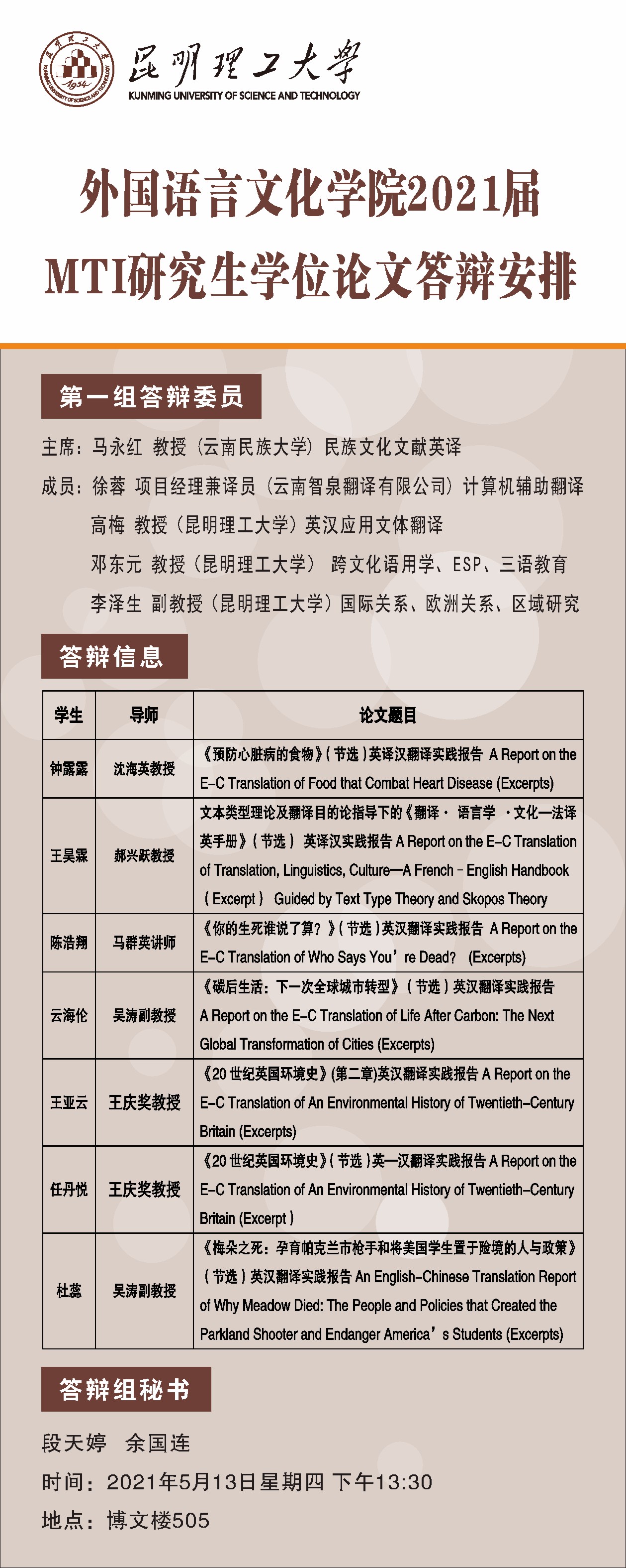 TYmanga 2021届MTI研究生学位论文答辩公示(第一组)