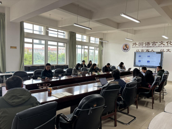 曹青青女士以国际投资分析报告为例,引出了语言咨询服务在国际社会的需求越来越高,以及外语人才在涉外企业的职业发展。她介绍了跨语言大数据语言服务智库研究基地的建设内容及用途,以国内高校的实际应用场景和相关成果为成功案例,分享了智库项目建设对于教师开展高端国际传播人才教育教学研究和数智化区域国别研究的实践意义。学院教师针对该智库项目的可行性和技术要求进行了咨询,解蒙和曹青青分别针对教师的疑问进行了解答,并强调了该项目的实时性、前沿性和操作的便捷性。