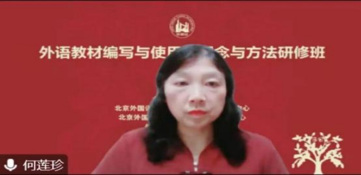 浙江大学何莲珍教授就外语教材建设与评价做专题讲座。何教授结合国内外专家文献和国内教育政策文件,讲解了不同理论视角下教材的内涵与作用,指出教材建设是国家事权,承担着立德树人的重要任务。何教授围绕“为何评 ”和“如何评 ”两个关键问题,提出并阐释了“评价主体、评价内容、评价形式 ”三位一体的大学英语教材评价框架。