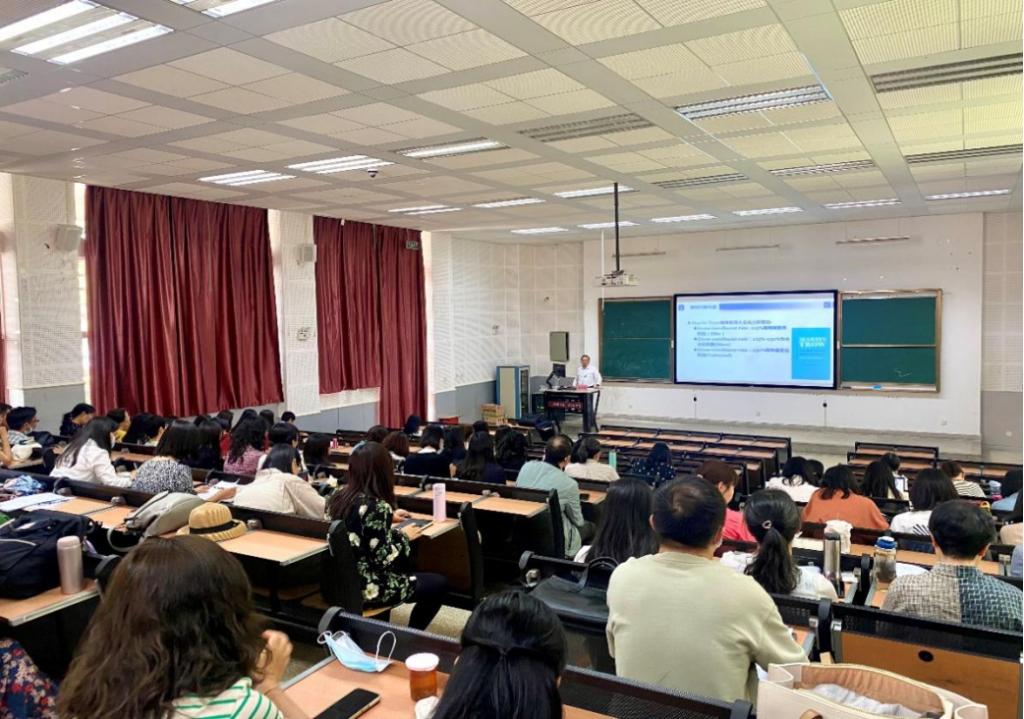 俞洪亮教授提出,我国高等教育进入了成熟期,学科专业是高等教育的核心支柱,为规模化培养人才、学科专业建设、培养质量评价、学位授予和学位授权审核等工作提供了基本依据。因此每位高校教师都应该关注高等教育普及化阶段带来的学科新变化,仔细研究即将实施的新一轮学科专业目录(2022)。外语学科带头人及教师应该看到以学科多样性为前提的学科生态系统再构,关注外语学科专业内涵发展和外语学科的育人之本,聚焦落实立德树人根本任务。对于变化要有不变的坚守,使用发展学科领域的国际惯例,保持卓越的学术品质,满足社会重大需求,推动外语学科专业比较优势提升。学科团队带头人、学院学科科研办、教务办、研教办及各系部认真组织教师参加讲坛,俞教授的讲座深入浅出、风趣生动,老师们认真聆听、积极互动。