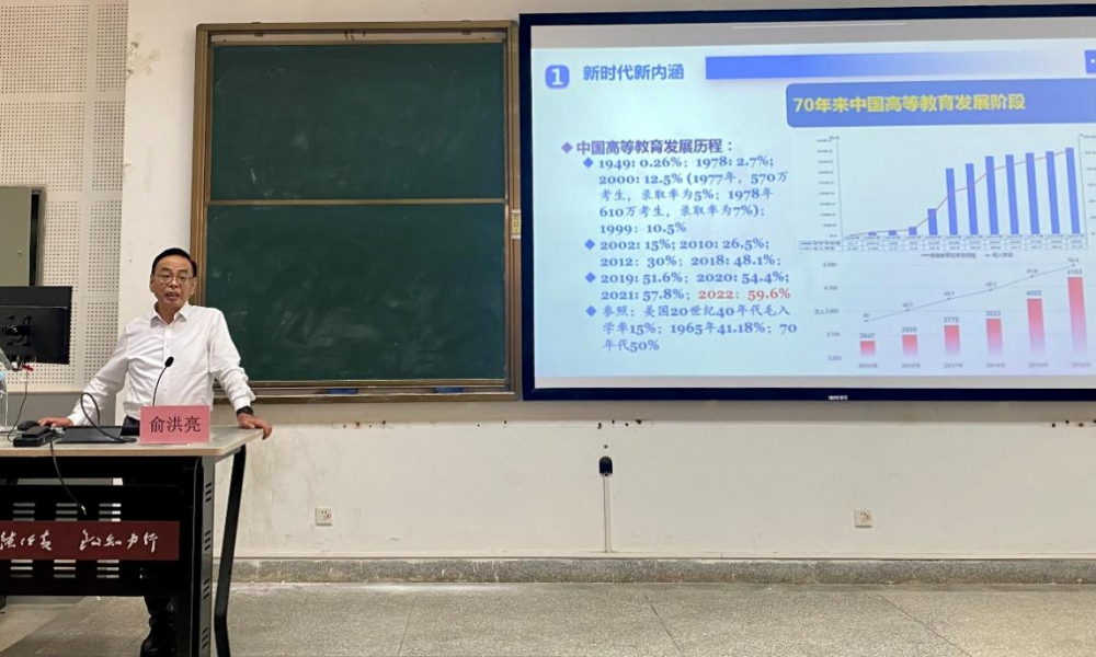 人文社科研究院主办外国语言文化学院承办的2023年度第二期明德社科大讲坛在计算中心报告厅举行,扬州大学俞洪亮教授到以“新时代外国语言文学学科发展的新要求、新任务和新范式”为题,由刘艳教授主持,学院领导班子,及全员一百二十余名教师参加。