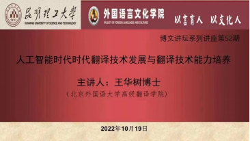 邀请王华树博士开展了题为“人工智能时代翻译技术发展与翻译技术能力培养”的讲座,学院100余位翻译硕士研究生在博文楼503和506教室集中参加了在线讲座。学院院长王英教授主持讲座。