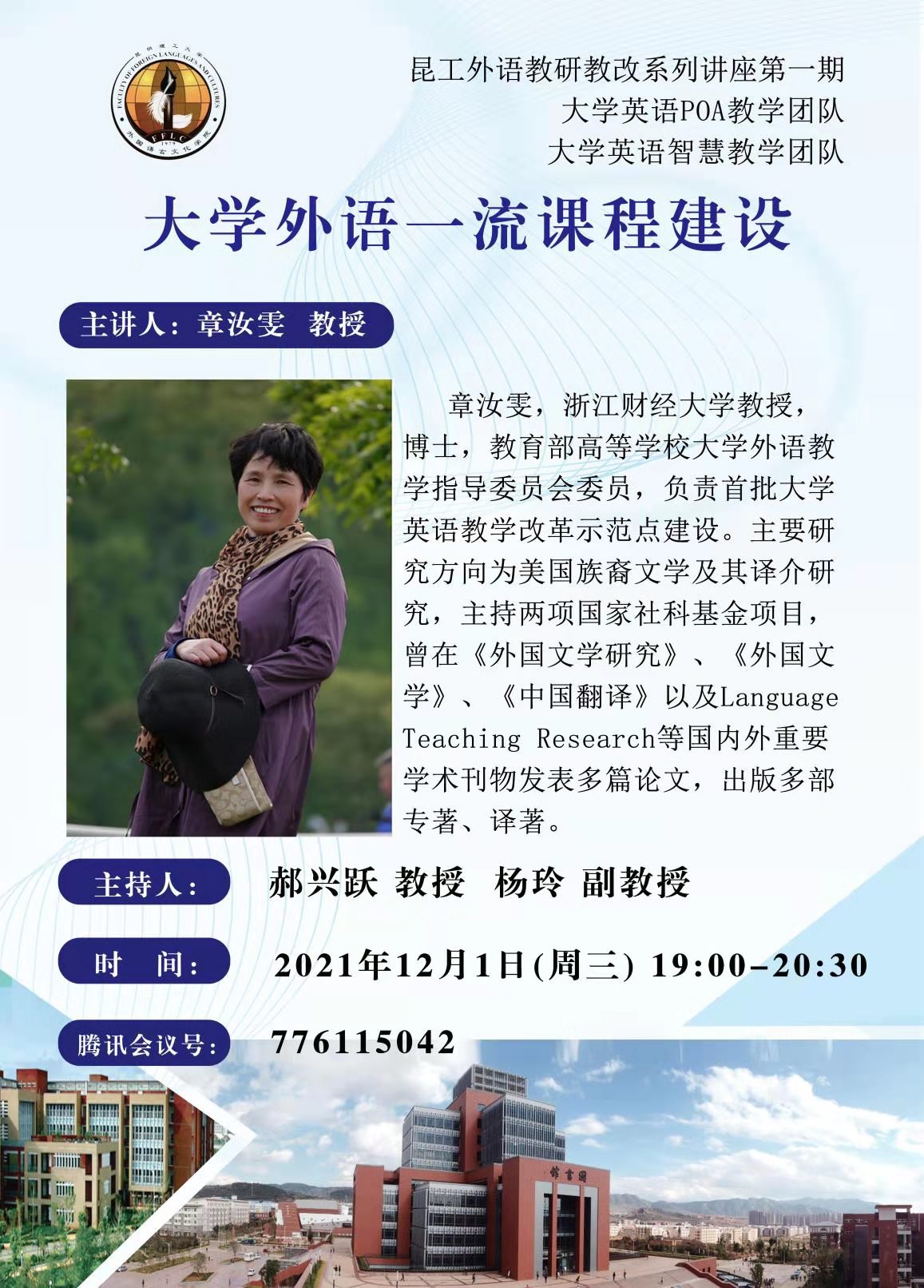 12月1日,TYmanga 外语教研教改系列讲座第一期“大学外语一流课程建设”通过线上线下混合的方式成功举办,本次教研由大学英语POA教学团队和大学英语智慧教学团队承办,王英院长和62位老师一起参与了此次教研。