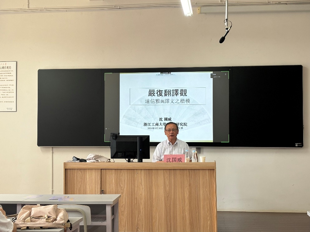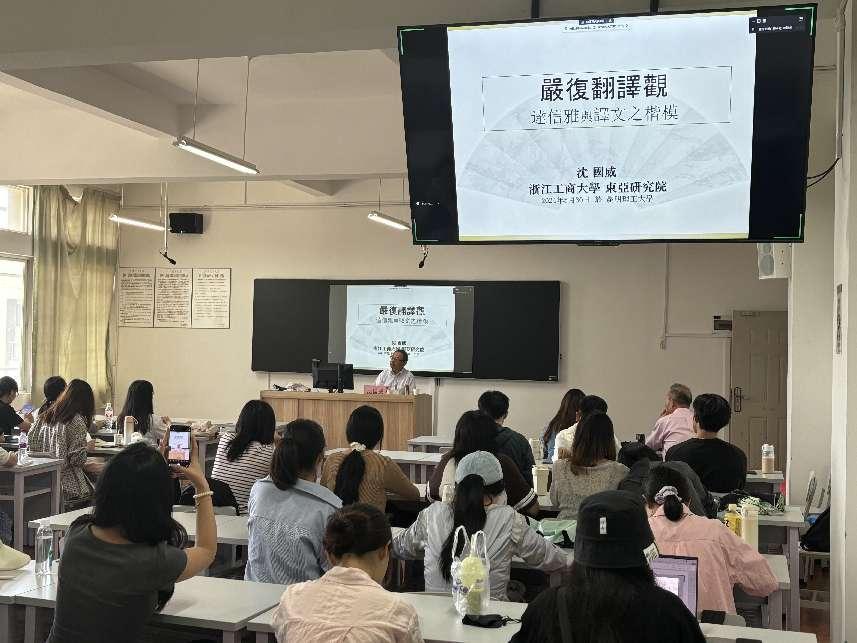 邀请浙江工商大学特聘教授沈国威开展以“严复翻译观——达信雅与译文之楷模”为主题的讲座。讲座在博文楼403教室举行,由李泽生副院长主持,学院部分教师和研究生参加。