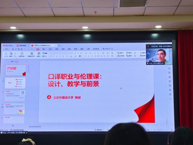 党争胜以“译者的综合素养与翻译人才培养”为题,强调翻译人才的综合素养,涵盖思政、语文、翻译理论、技术、伦理、鉴赏、写作及人文精神;王育伟探讨了笔译硕士的能力发展路径,分享了优化的课堂教学设计方案;黄持渊基于她在韩国外国语大学通翻译大学院的教学实践,交流了培养国际化翻译人才的经验。