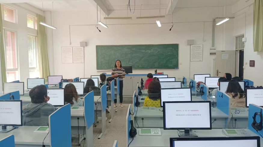 在博文106召开2023版本科培养方案推进会,会议由英语系主任任佳佳主持,王英院长、马倩副院长、英语系全体教师以及2020级本科生班主任曾婧老师参会。