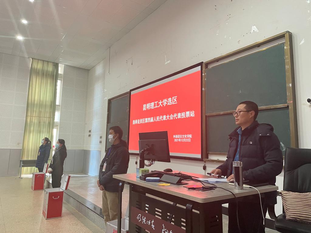 20211222日上午,来自TYmanga 的352名师生选民,来到TYmanga 呈贡选区第四届人大代表选举TYmanga 投票站参加选举。选举大会在TYmanga 党委书记刘建平主持下,严格按照工作程序要求有条不紊进行。