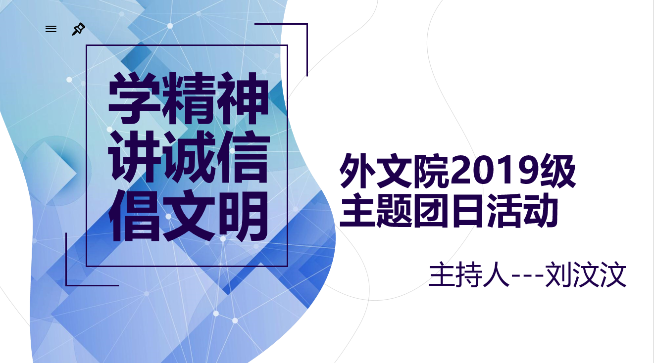 2019级在线上腾讯会议开展“学精神,讲诚信,倡文明”主题团日活动。本次活动由团支书刘汶汶主持,2019级同学全体参与。