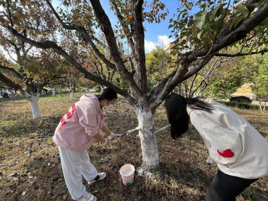 组织开展“劳动月”集体义务劳动活动。在学院辅导员吴开强带领下,学院各年级本科学生干部、学生骨干代表共计30余人参加劳动,为呈贡校区怡园C区50棵树木的防虫防寒涂刷,同时认真开展了学院网格区域内安全管理排查。