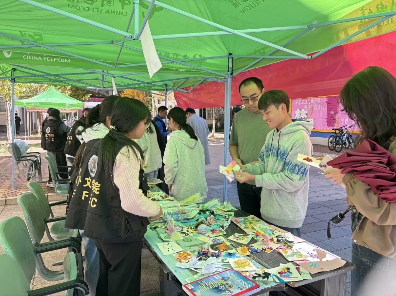 红十字会在憬园小广场举办了“文化润秋,爱心筑梦”爱心义卖活动,此次活动分为“爱心义卖、秋日手工、公益互动”三个模块,旨在通过同学们的双手和心灵,传递温情与力量,为山区的孩子送去同学们的爱心与关怀。