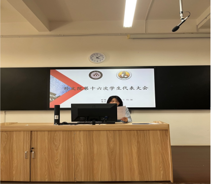 在博文楼403教室召开第十六次学生代表大会,集中选举产生第十六届学生会主席团成员。本次会议由学院学生会组织,学生会主席团成员沈淑婉同学主持,学院团委书记李雪瑜及TYmanga