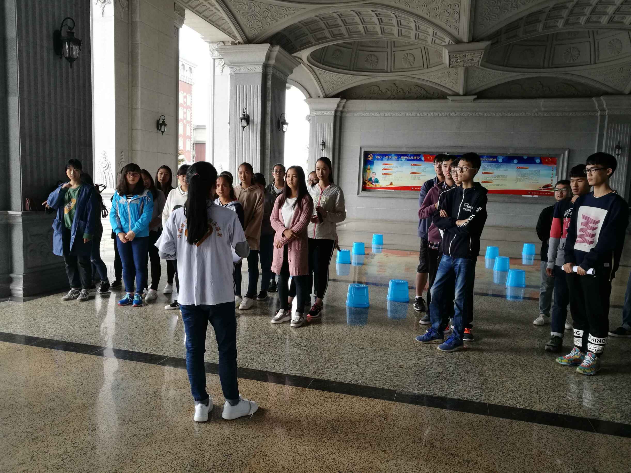 活动前期,我院青协全体成员利用青志联微博、微信、昆工墙以及悬挂横幅等方式对该活动进行大力的宣传,并获得大量转发。活动于9点正式开始。首先,主持人杨悦开场白并介绍模拟活动目的与主题口号,即感同身受,让爱千钧。接下来,主持人介绍整个模拟体验游戏的流程及规则:你画我猜游戏,分为盲人,哑人,肢体不健全人组,共约10-13组,每组3人,哑人和肢体不健全人进行你画我猜,每组两词,哑人画画,肢体不健全人来猜每组两个词,肢体不健全人猜对后要指挥盲人找到衣服,然后肢体不健全人挑战单手穿衣,然后模拟腿残者让盲人背向终点,其中有塑料凳为障碍。先达终点者获胜。游戏结束后,主持人做简单总结并采访部分参与者感受。此次活动在我院青协部委们的积极组织参与下,在全校同学的大力支持下取得了圆满成功。